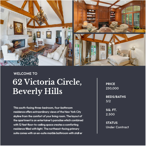 Property information is automatically synced with any chosen social media design. Easily select properties and adjust your information with just a few clicks.